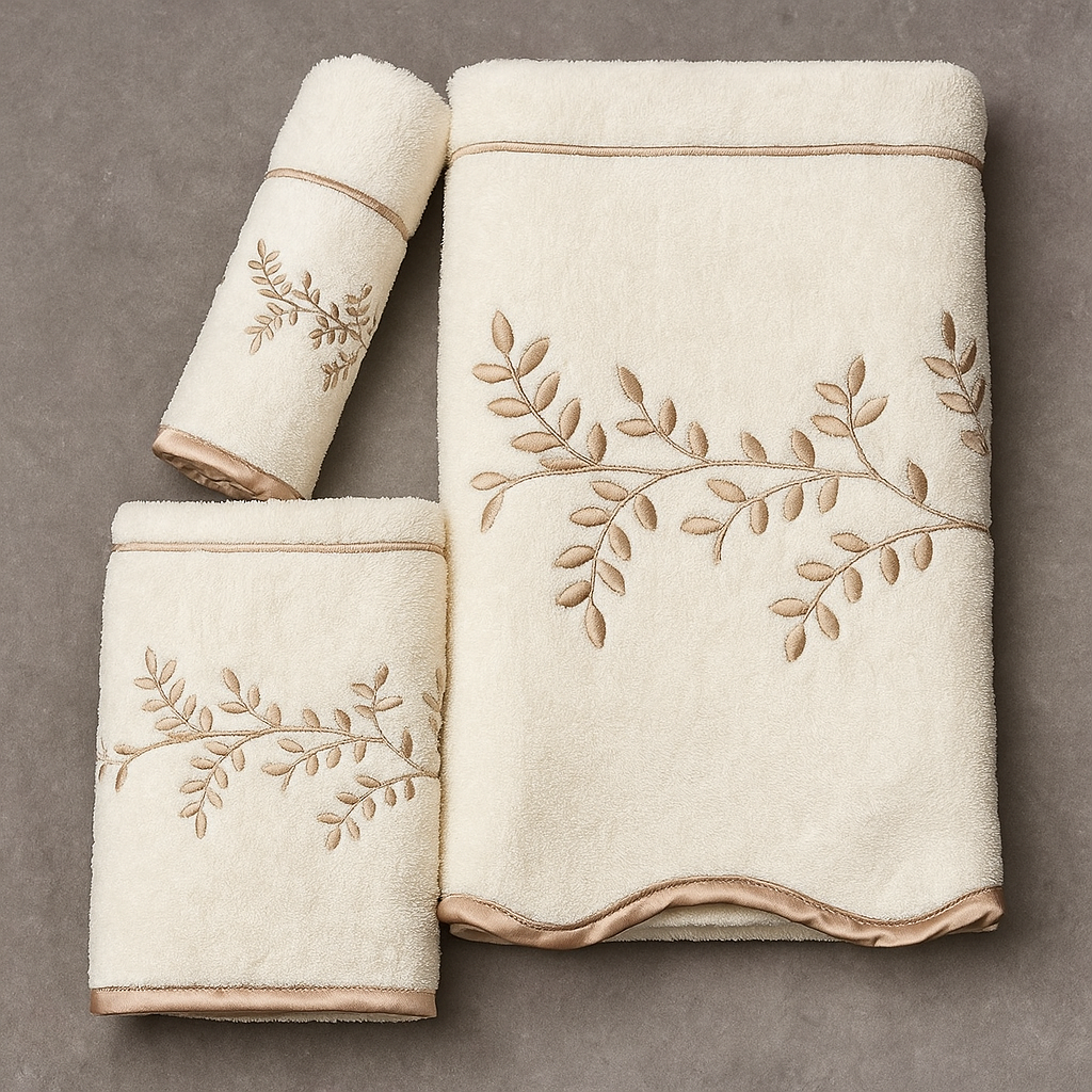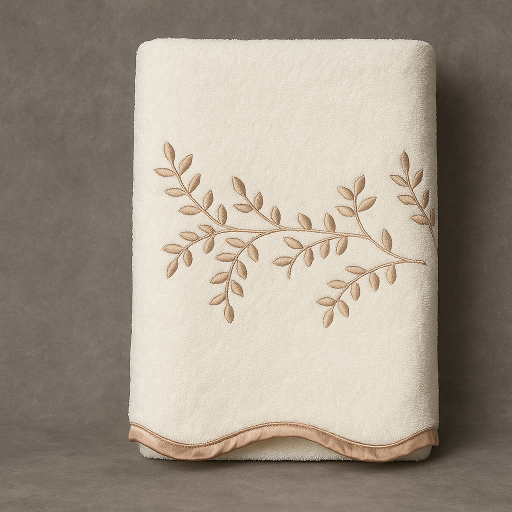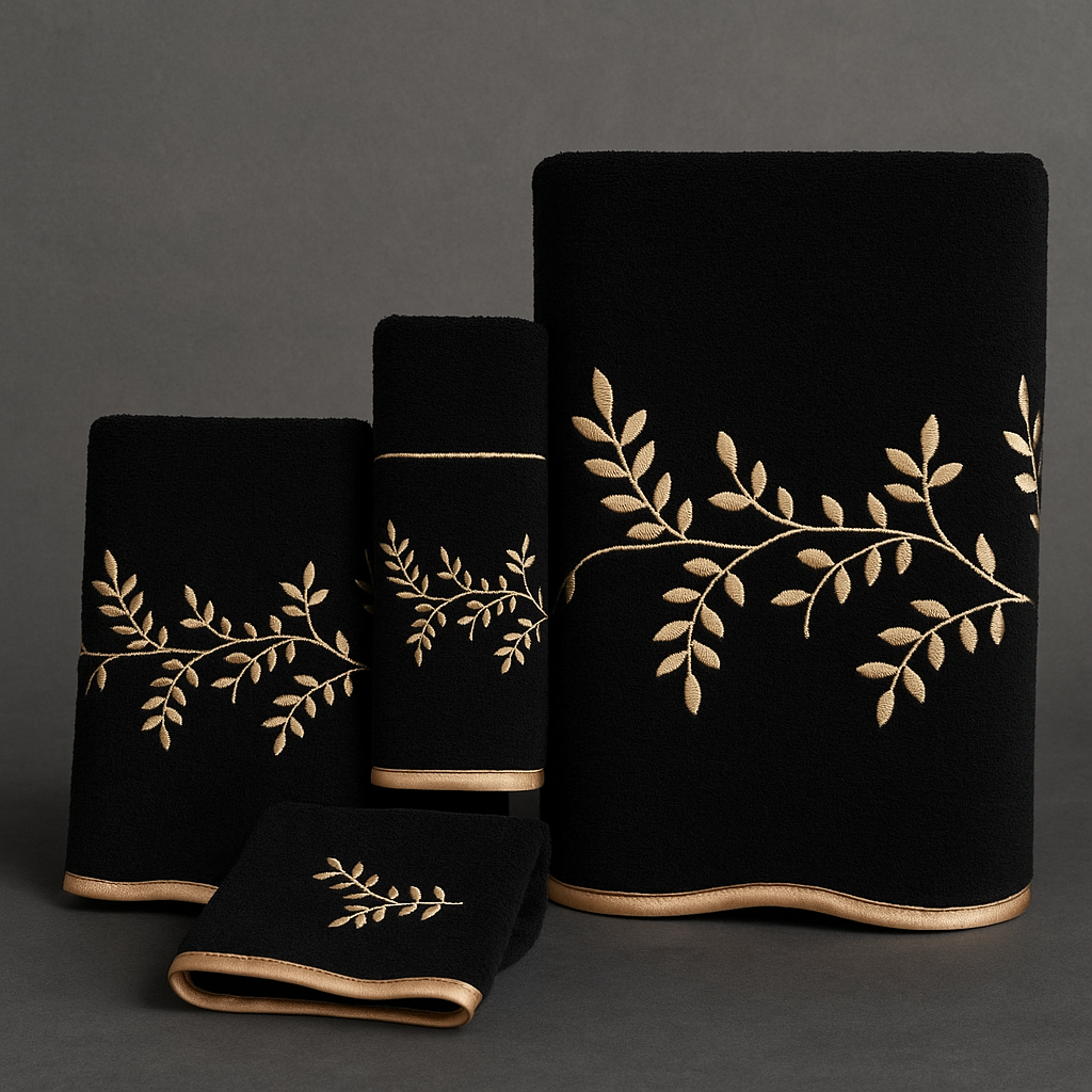 מגבת איכותית ועבה במשקל 550 ג׳ למ״ר ביעצוב מרהיב ויוקרתי בשילוב רקמה זהובה. עשויה בד 100% כותנה עשיר עם ספיגת נוזלים משופרת.